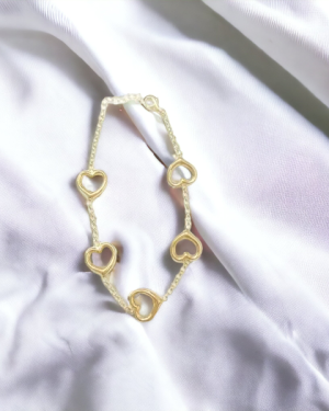 A minimal but lovely bracelet that maximizes styling impact. Handcrafted in 10k solid gold, this bracelet is named for the way its interconnected with hearts resembling love is all around us!