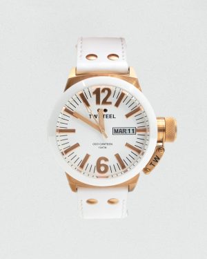 TW STEEL- CEO Canteen – White Dial White Leather Strap- 45MM